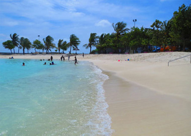 马累西边朝海的地方是它的休闲娱乐中心。这里,一个可爱的小海滩从防被堤四脚墙中被精巧地开挖出来,在它的旁边是各种各样的快餐店,还有开阔的场地用来举行特定的足球和极球比赛。再往机场轮撞的方向走,在Majeediyya Camival有游乐园,包括一家保龄球馆和更多的简餐店。