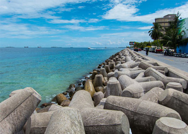 在马累周围多数四脚墙壁的装置使马累免于2004年印度洋海啸所带来的潜在的巨大破坏。四脚墙壁是结实的石块,有四只肥壮的腿,每只长约1米,突出来就像一个四面体的四个角,这些石块可以一起被一排排或一层层地叠成堆这样它们可以连结在一起,形成一面几米高的墙壁,看起来像是小孩玩的建筑玩具的巨人版。