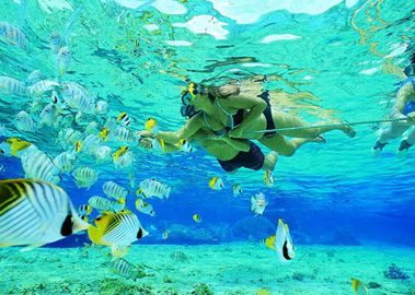 如果要用一种颜色来表示马尔代夫,那就是蓝,各种深深浅浅的蓝:深邃的蓝色,透明的蓝色,偏绿的蓝色,从你到马尔代夫开始,就被蓝海、蓝天包围。正如马尔代夫的广告所说,"在地球上最后一个乐园里,只有你和你的爱人,还有马尔代夫。"