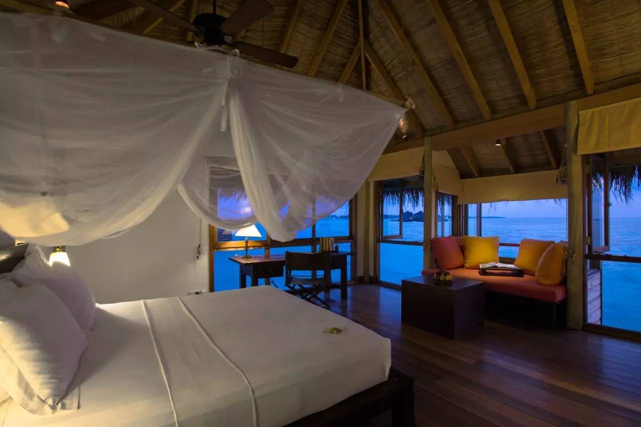 Gili岛45栋完美绝伦的水上别墅由交错的码头链接。水上别墅除了空间出奇之大外,还拥有私人水上花园、露天浴室和日光浴甲板,夜晚星空下,大海上,按摩浴缸中,抿一口香槟,沉醉于月色中。