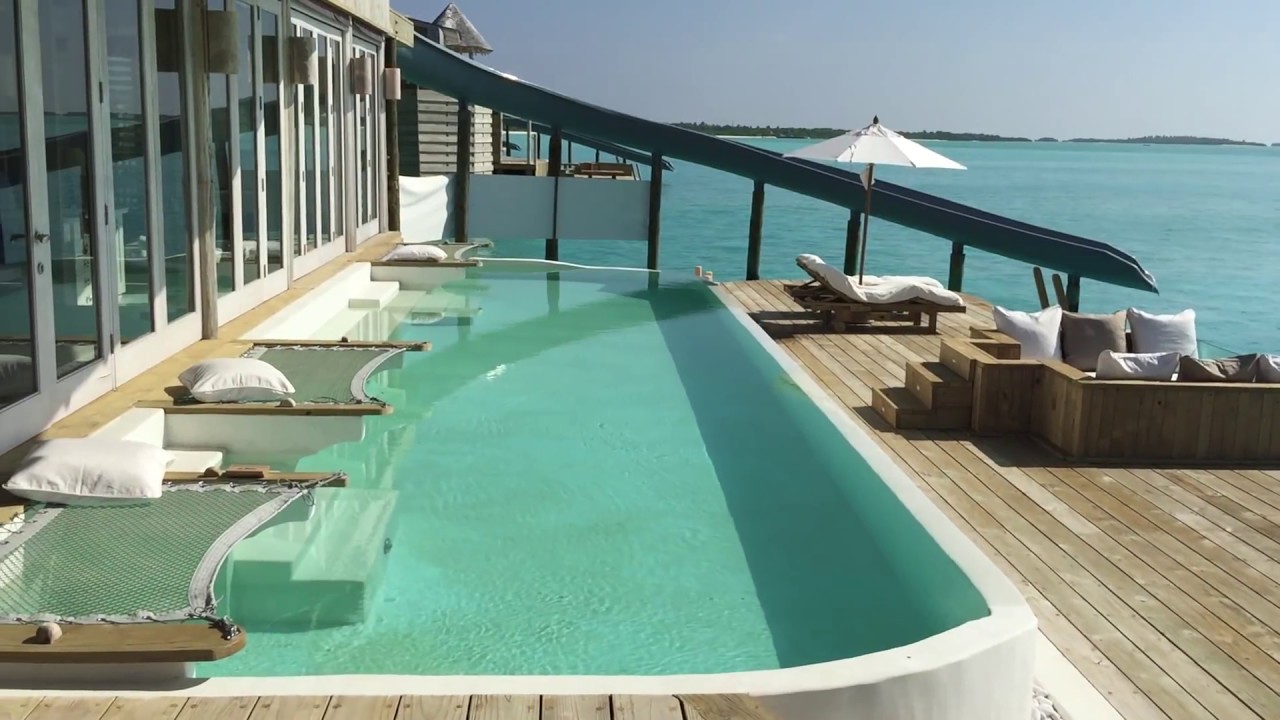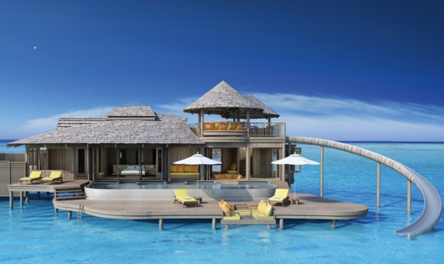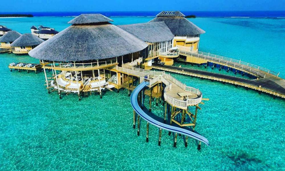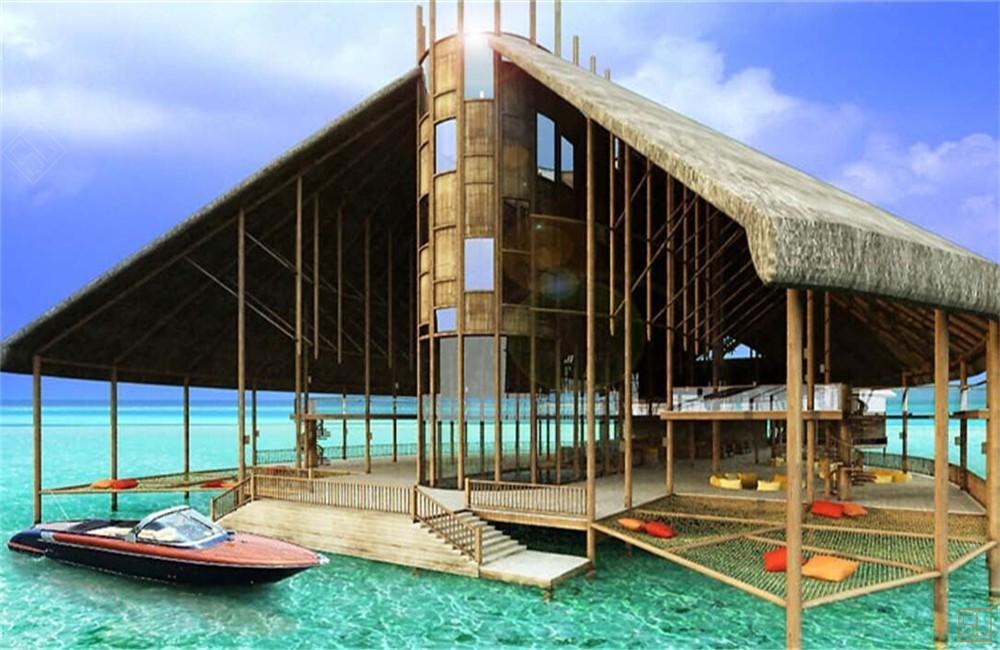 Soneva Jani度假村的公共clubhouse——当你体验完对私人别墅里生活感到乏味了,可以来到这儿一栋三层的水上俱乐部来,这里涵盖了餐厅、酒吧、音乐平台、瑜伽馆、Spa、儿童俱乐部、双体船网、天文台、商店等种类丰富的休闲玩乐设施,以及加长型的公共海上滑梯。