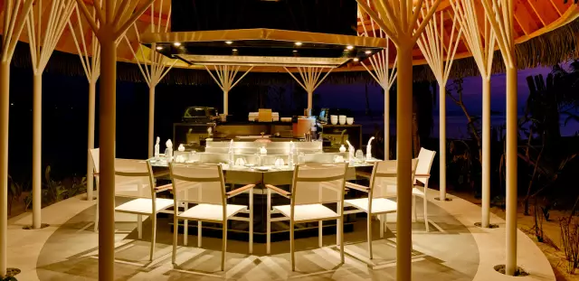 日本餐厅,在灿烂的星空下享用新鲜的生鱼片、寿司及多汁的肉类,海鲜铁板烧。
