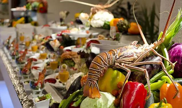 国际美食主餐厅提供丰富的特色自助早餐、午餐和晚餐,现场烹饪台,烧烤,令人愉悦的甜点,鹅肝酱,及供应80多种来自世界各地的优质葡萄酒选择。