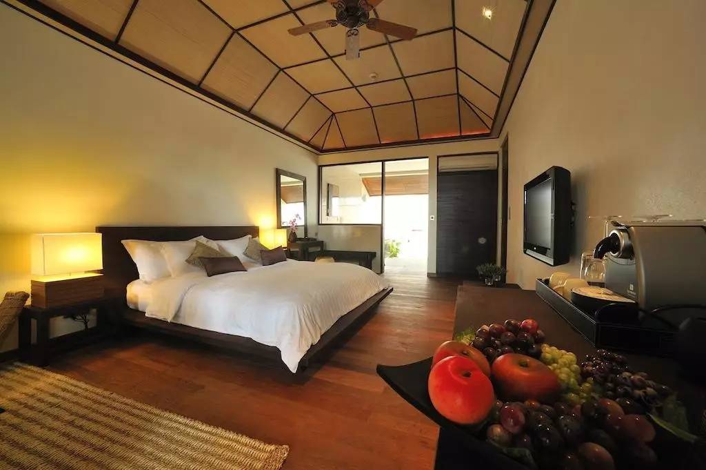 建于沙滩之上,高雅漂亮的别墅房间配以天然的木材,半露天浴室充满海岛风情,一张宽阔的大床,迷人的房间色调及环绕的背景音乐为您营造浪漫的气氛。