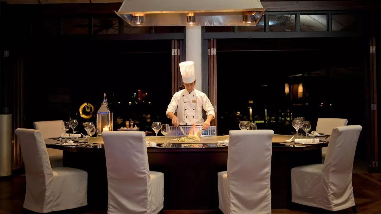 这里为宾客提供新鲜食材的日式铁板烧晚餐,让您在用餐的同时欣赏现场烹饪的乐趣。