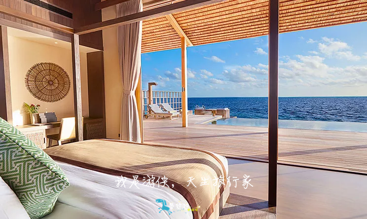 岛小,人少安静,私密性高,全岛仅15间水屋(没有沙屋),房间面积大,每间房都带44平米超大私人无边泳池。