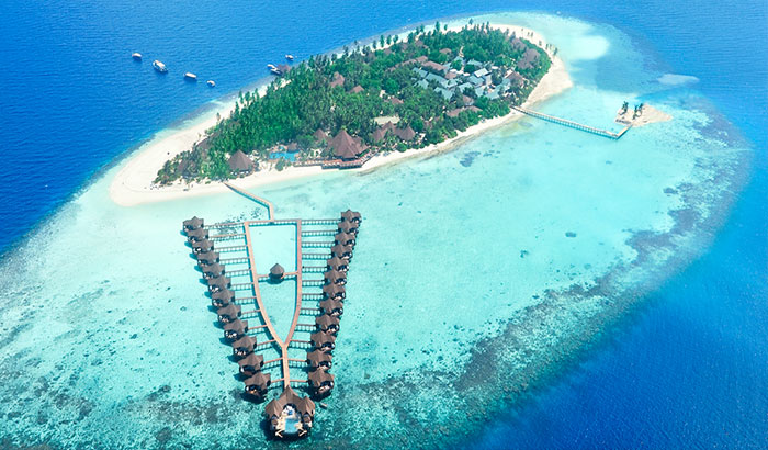 马尔代夫鲁宾逊岛(Robinson Club Maldives)藏在岛上青葱的绿丛中,于2009年开业,2013年装修过,很原始风的建筑,跟岛屿的环境很协调。其中有座充满水生物的屋礁,它是马尔代夫最令人赞叹的景致之一,这就是马尔代夫鲁宾逊岛。2009年酒店重建,岛上设施豪华,丰富的一价全包体验,性价比非常突出。它的花园房四周均是植物,私密性很好,沙滩屋开门就是大海,还有浮潜点。普拉提、瑜伽、泳池有氧操和排球比赛等活动会贯穿全天。工作人员会在床头留一张"报纸",预告第二天岛上的活动安排。