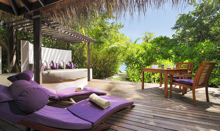 房型介绍:落于沙滩,可俯瞰海洋景观,别墅前露天的甲板上,有舒适的大躺椅休息区,无论是日光浴或夜晚看星辰都是极佳的视野。屋内有宽敞的卧室、更衣间、大浴室可观赏海洋景致,还有干湿分离的两个淋浴设备。加上一个后花园,有一个小浴池、休息床。