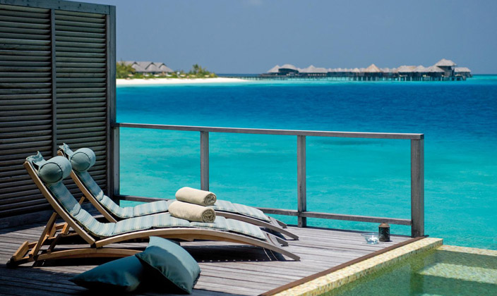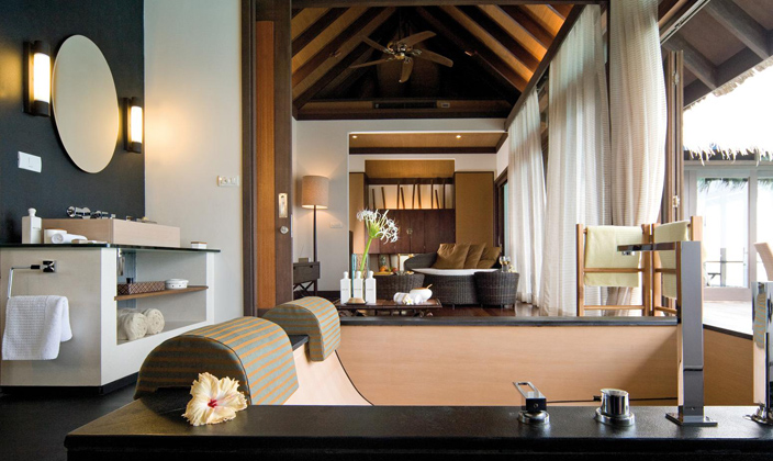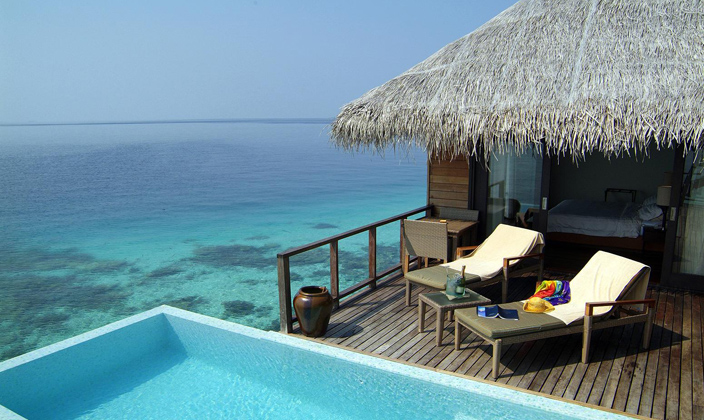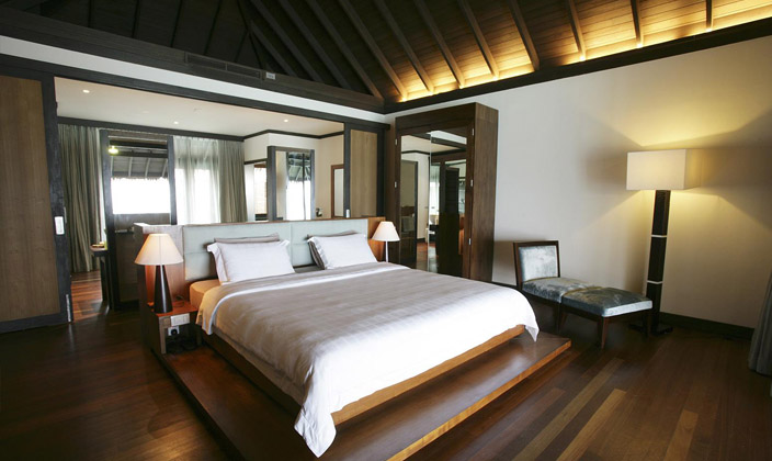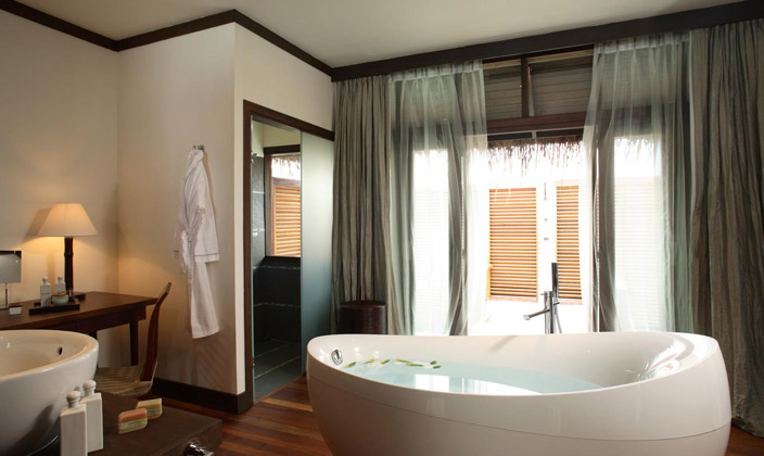 房型介绍:水上别墅内提供特大号的软床,宽敞的浴室内设有豪华双洗手盆,和超大的浴缸。充满阳光的私人阳台连接着的是一个私人泳池,还有一个露天浴室可供您使用。当您在这里游泳的时候,放眼望去那无边的海景一定会让您觉得赏心悦目。