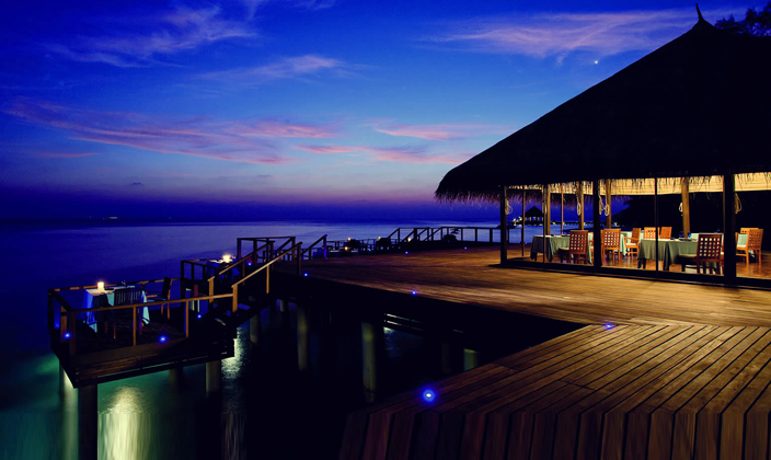 餐饮介绍:建在沙滩上,每周的海鲜烧烤是非常著名的,提供新鲜的海鲜、鱼和美味的甜点,在美丽的马尔代夫夜晚星空下享用它们。