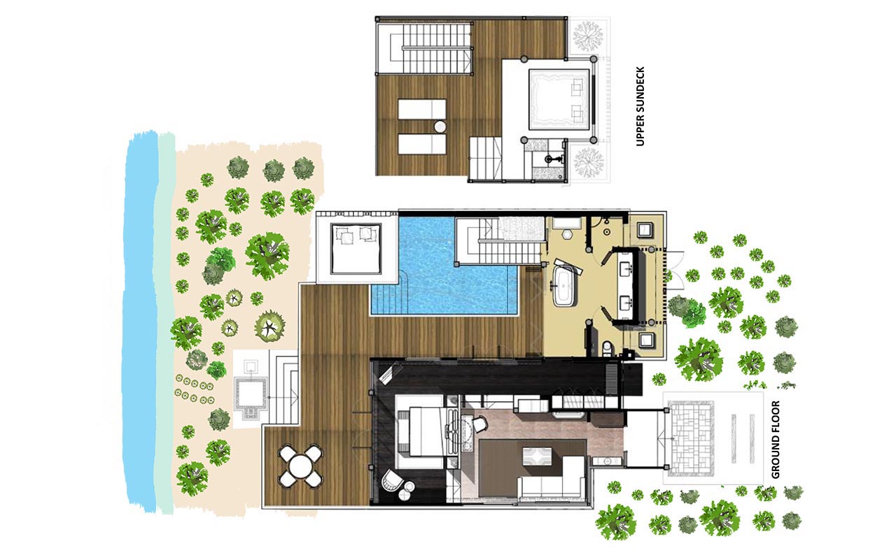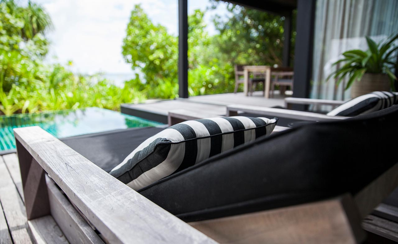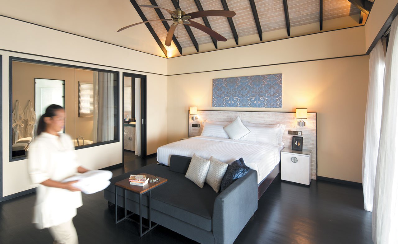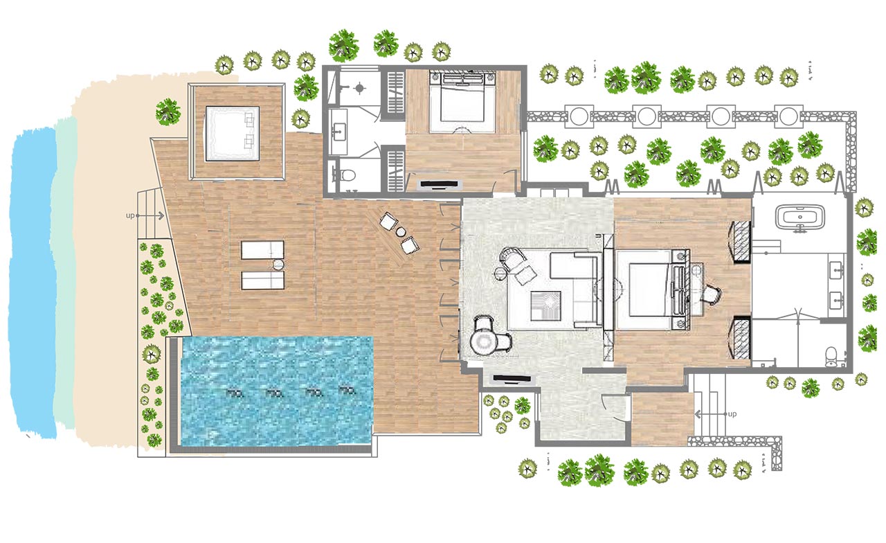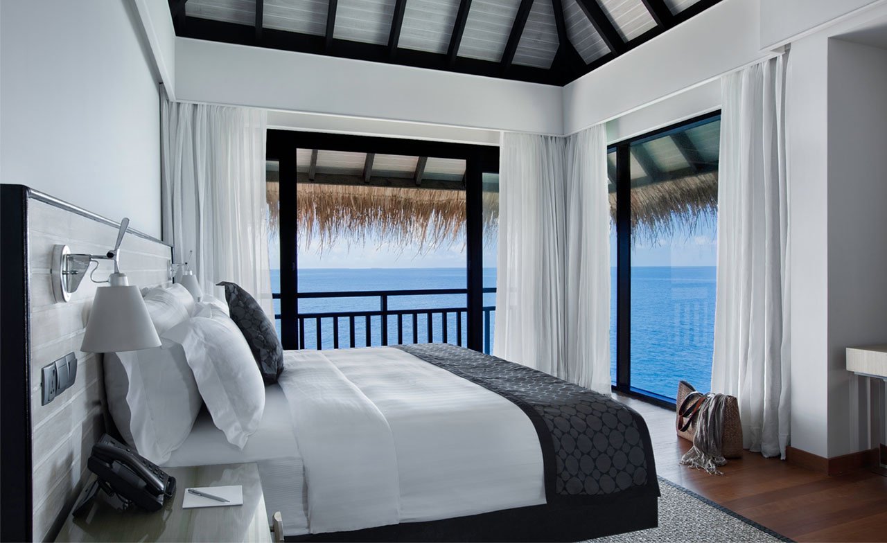房型介绍:从海洋泳池别墅可以直接进入泻湖原始水域,在5.2米的无边泳池、户外甲板或遮阴的日光躺椅你可以欣赏到惊人的印度洋景观,落地窗休息让你不会错过阳光下的任何一刻的风景。客人可以从卧室或宽敞的躺椅休息区进入户外甲板。