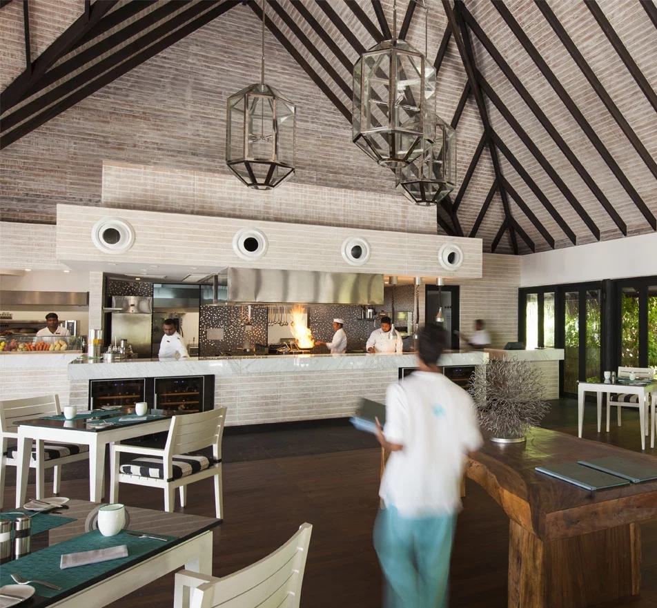 餐饮介绍:蓝盐国际餐厅是一家全天候开放的餐厅,提供一个返璞归真的用餐体验,鲜榨果汁或香槟早餐开启你史诗般的假期,午餐,品尝当地的食物如炒蔬菜、黑胡椒螃蟹、清蒸岛上捕获的鱼,当太阳下山时,提供牡蛎、龙虾、西班牙海鲜饭,蓝盐餐厅的气氛一整天都在变化,但是服务都是一样的温暖,友好和直观。