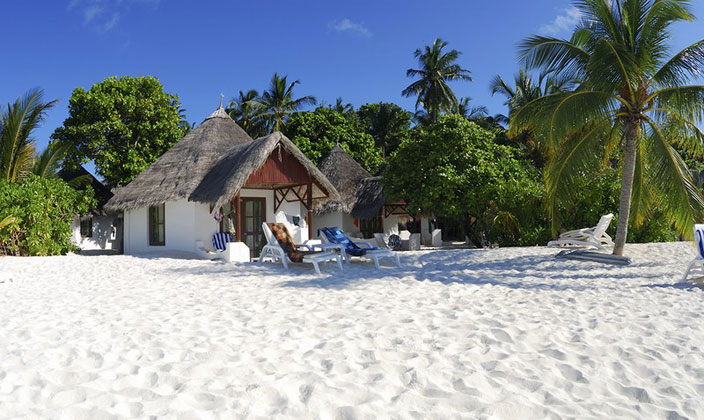 马尔代夫蓝色美人蕉岛又名苏哈莉岛、苏哈姬莉岛,属于4星级的豪华岛屿度假村,2010年翻新重建,建成一个具有异国情调的岛屿,高大的棕榈树和白色沙滩交相辉映,闪亮的蓝绿色珊瑚礁石围绕着本岛,蓝色美人蕉岛由白色的海滩围绕,岛上覆盖着浓郁修长的棕榈树。满目高耸挺拔的棕榈树和明媚清澈的蓝天白云,使游客都无不感慨地称赞这里远胜于美国南部迈阿密的西棕榈滩。很适合那些想找一个隐秘的小岛度假的游客。该岛有58间散布于岛上的客房,房间都极其宽敞。另外还有15座漂亮的水上平房。在此无疑会享受到绝对的安静。
