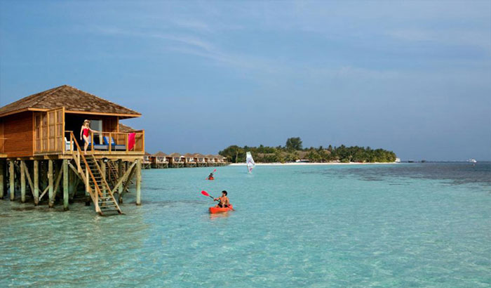 房型介绍:座落在水上泻湖之中,从你的私人码头步行很短即可到达。房间卧室较大,木制地板,IPOD基座,茶及咖啡机,有户外浴室及按摩浴缸,从木制的楼梯能够从阳台上直接下到海里。